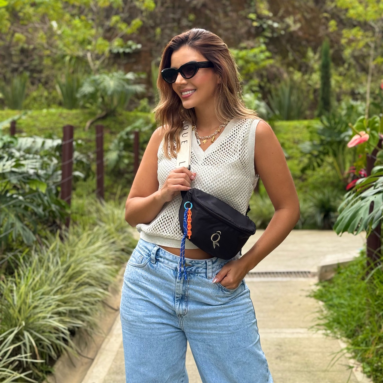 - Lleva una correa removible y graduable